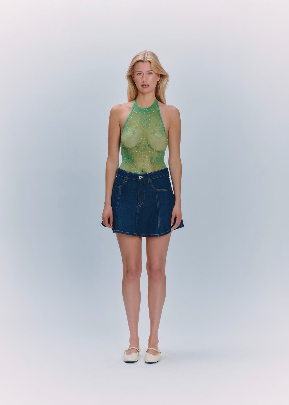 Halterneck Heart Bodysuit Green