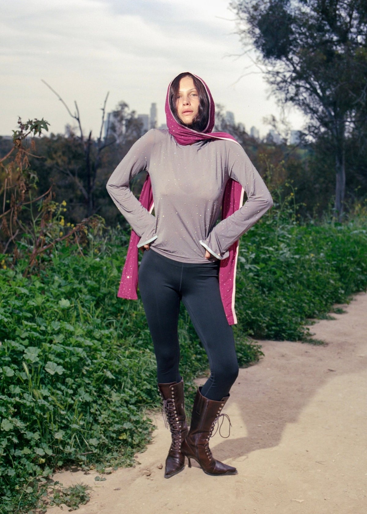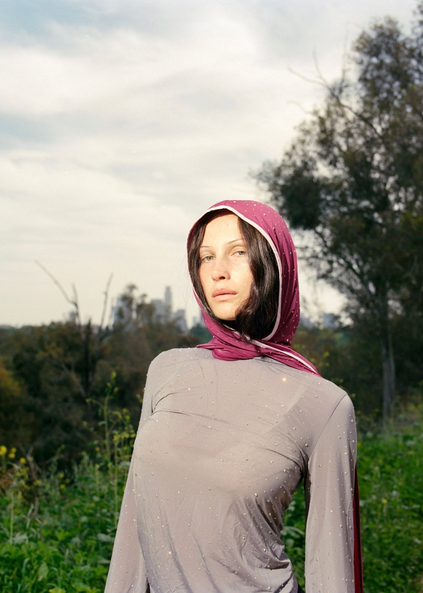 Scarf with a hoodie that embraces your head and hair
