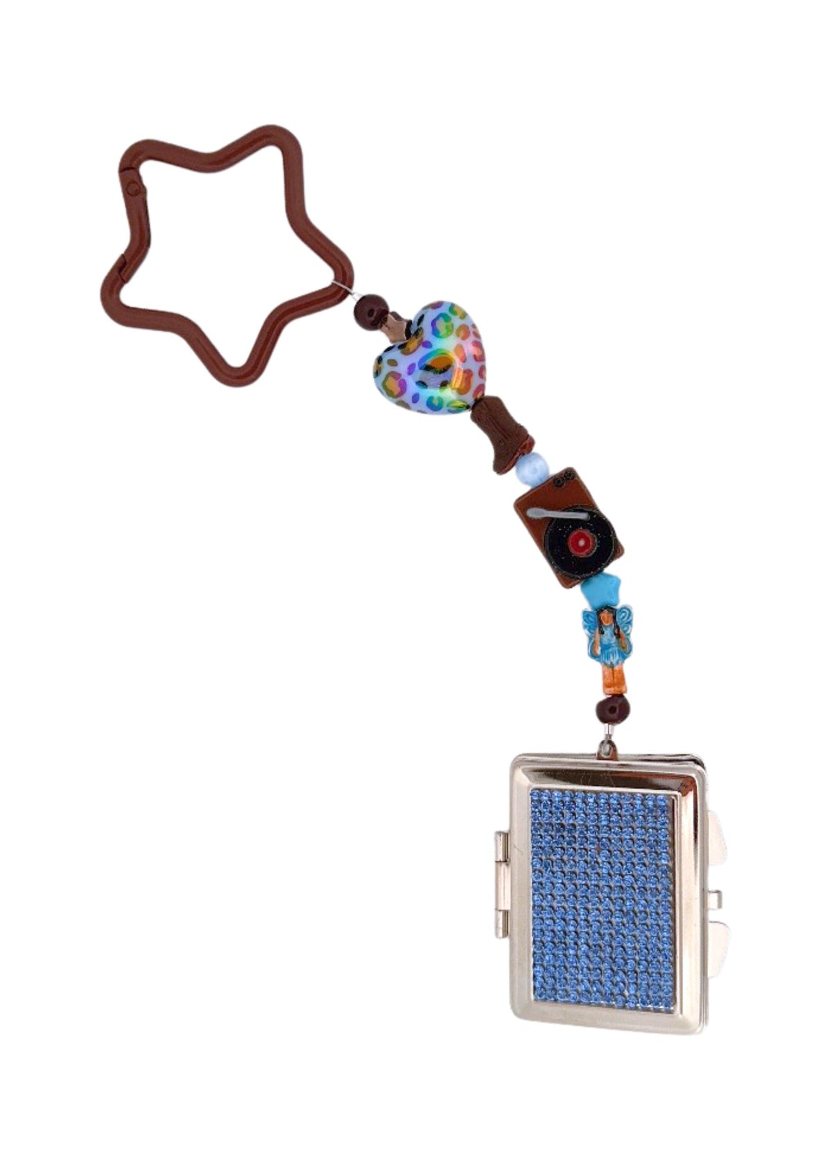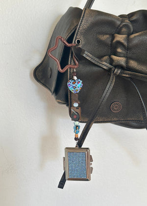 An Ian Charms keychain with mirror inside