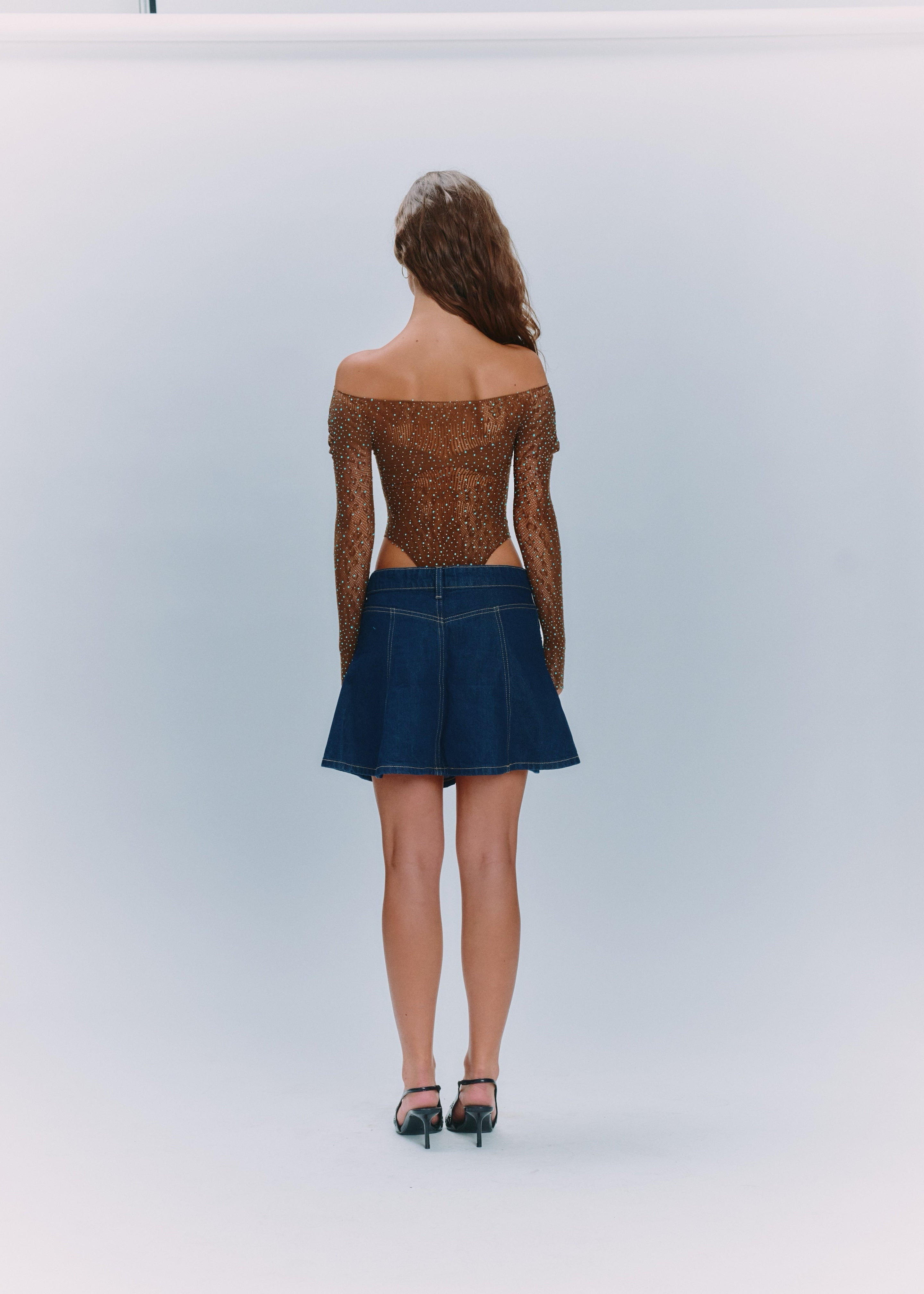 A Ciberia limited-edition Cheetah bodysuit with blue sequins